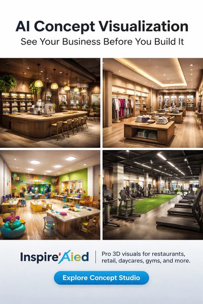InspireAIed offers AI-powered 3D concept visualizations that turn your ideas, sketches, and notes into clear, professional visuals you can use to plan layouts, explain your vision, and present your concept with confidence.